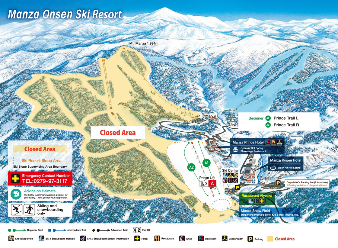 萬座溫泉滑雪場包括滑雪中心、萬座王子大飯店以及兩個雪具租賃商店,可為您提供最新型號的單板雙板裝備和滑雪服。