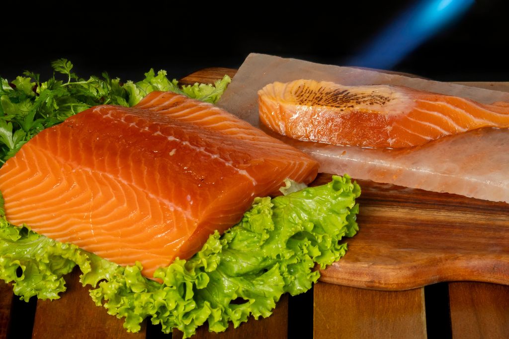 오키나와현산 흑설탕으로 마리네이드한 노르웨이 연어 구이 암염구이