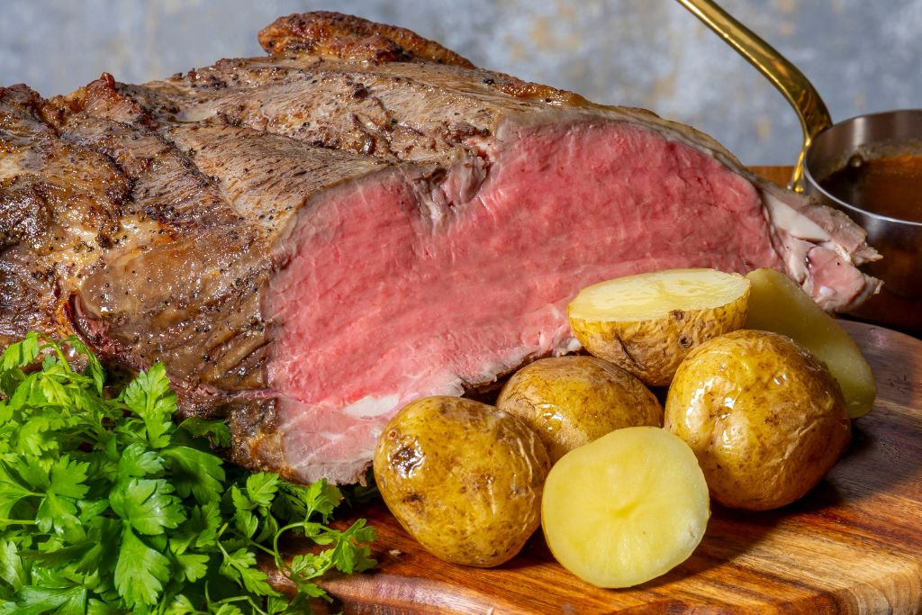 로스트 비프&갈릭 쉬림프, 포테이토 로스트 트러플 풍미, 진저 크래프트 진의 주니퍼 베리 소스