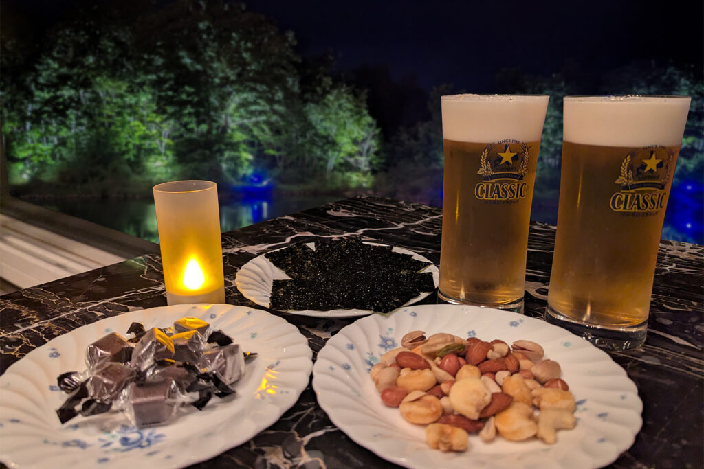 This plan includes a nightcap voucher redeemable at Lounge Suzuran, which covers 2 drinks and snacks.