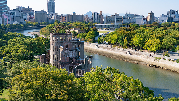 Atomic Bomb Dome and Hiroshima’s lush greenery and waterways.