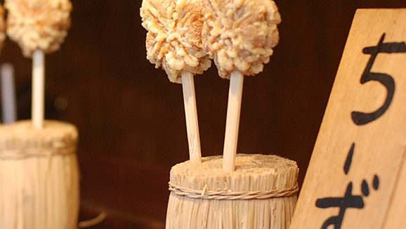 Try the local specialty age-momiji, a deep-fried maple leaf-shaped cake filled with warm sweet bean paste, perfect for a snack.