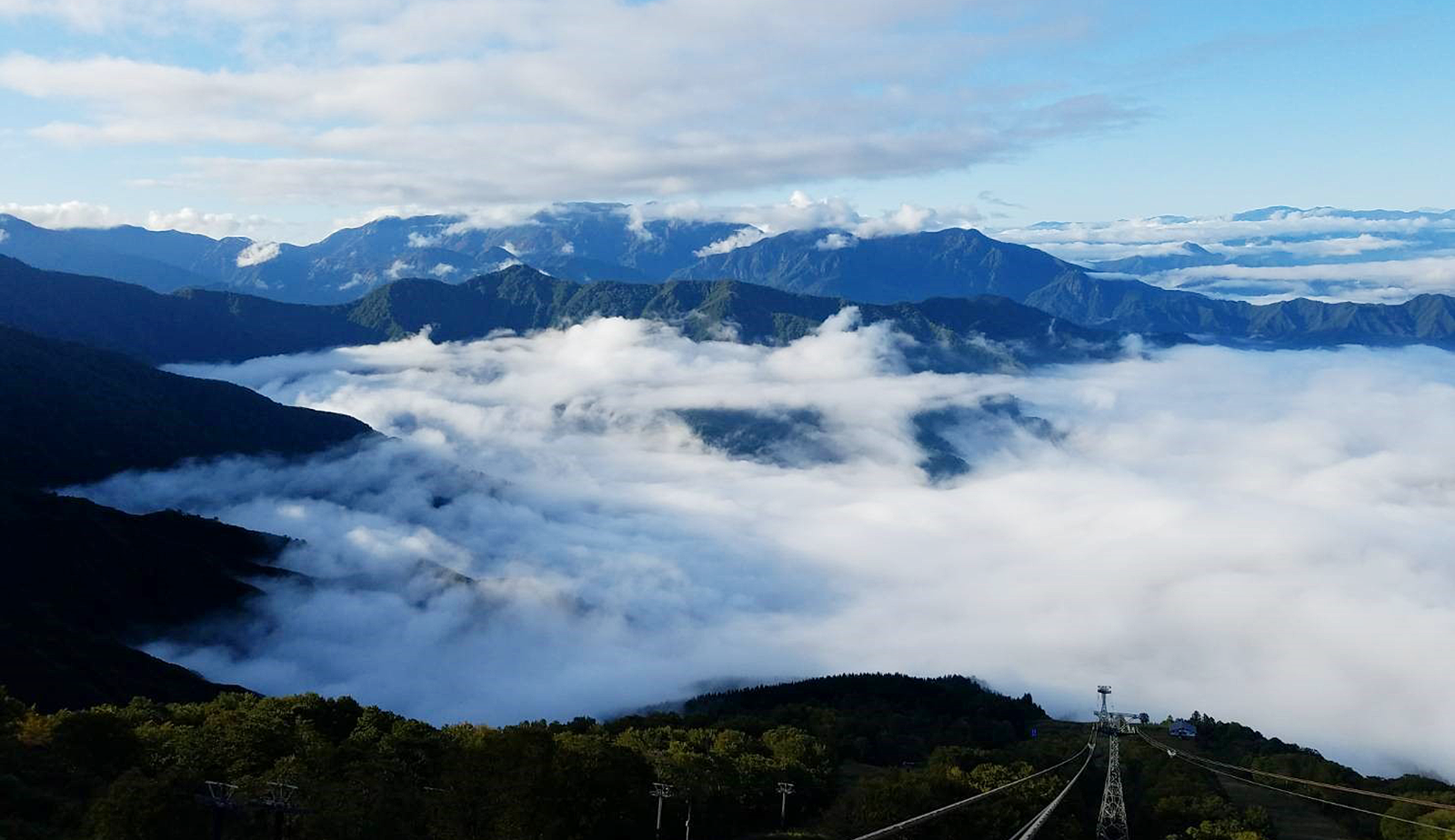 81인승 로프웨이로 산정역까지 하늘 산책을 즐겨 보시기 바랍니다. 전망대에서는 조신에쓰의 산악 지대부터 바다 너머의 사도섬까지 절경을 자랑하는 가을의 파노라마 풍경을 만끽하실 수 있습니다. 이 시기 한정으로 미나미우오누마산 고시히카리로 만든 ‘주먹밥’도 레스토랑에서 제공합니다.