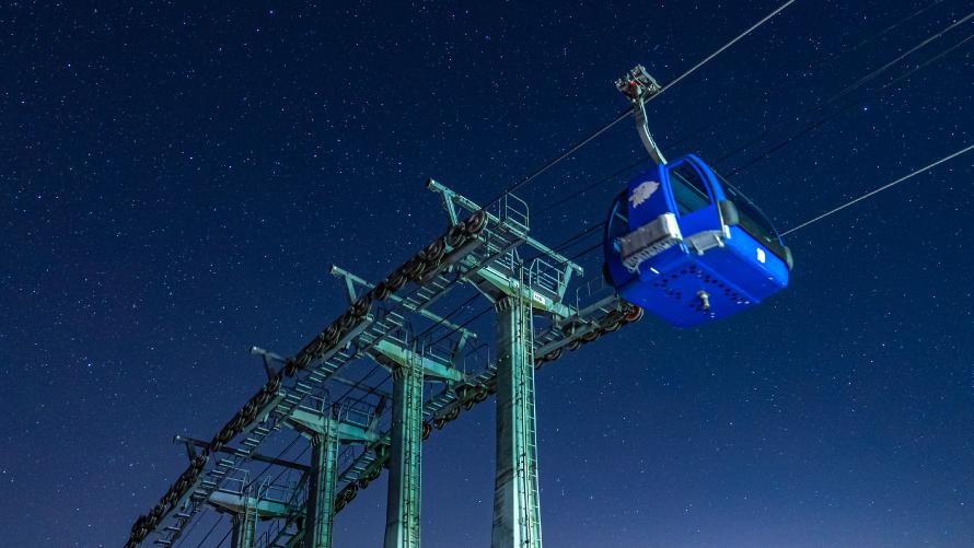 從飯店前搭乘纜車,輕柔地升上空中,