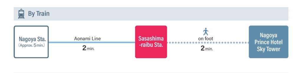 從東京、大阪、京都搭乘東海道新幹線至名古屋站總站後再搭乘1站(2分鐘)即達。