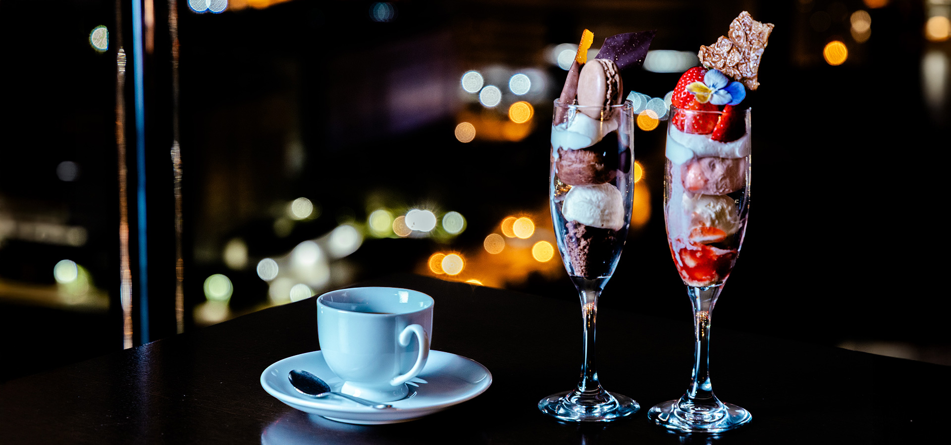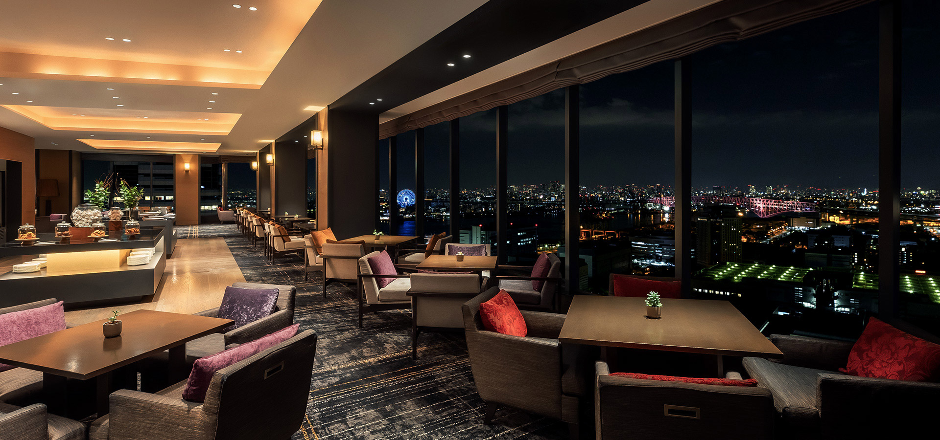 Located on the top floor of the hotel, this sky lounge and bar offers breathtaking night views spanning from Osaka to Hyogo. In addition to a full selection of alcoholic beverages, it serves as a “Night Cafe” where you can end your day with exquisite sweets, coffee, and tea.