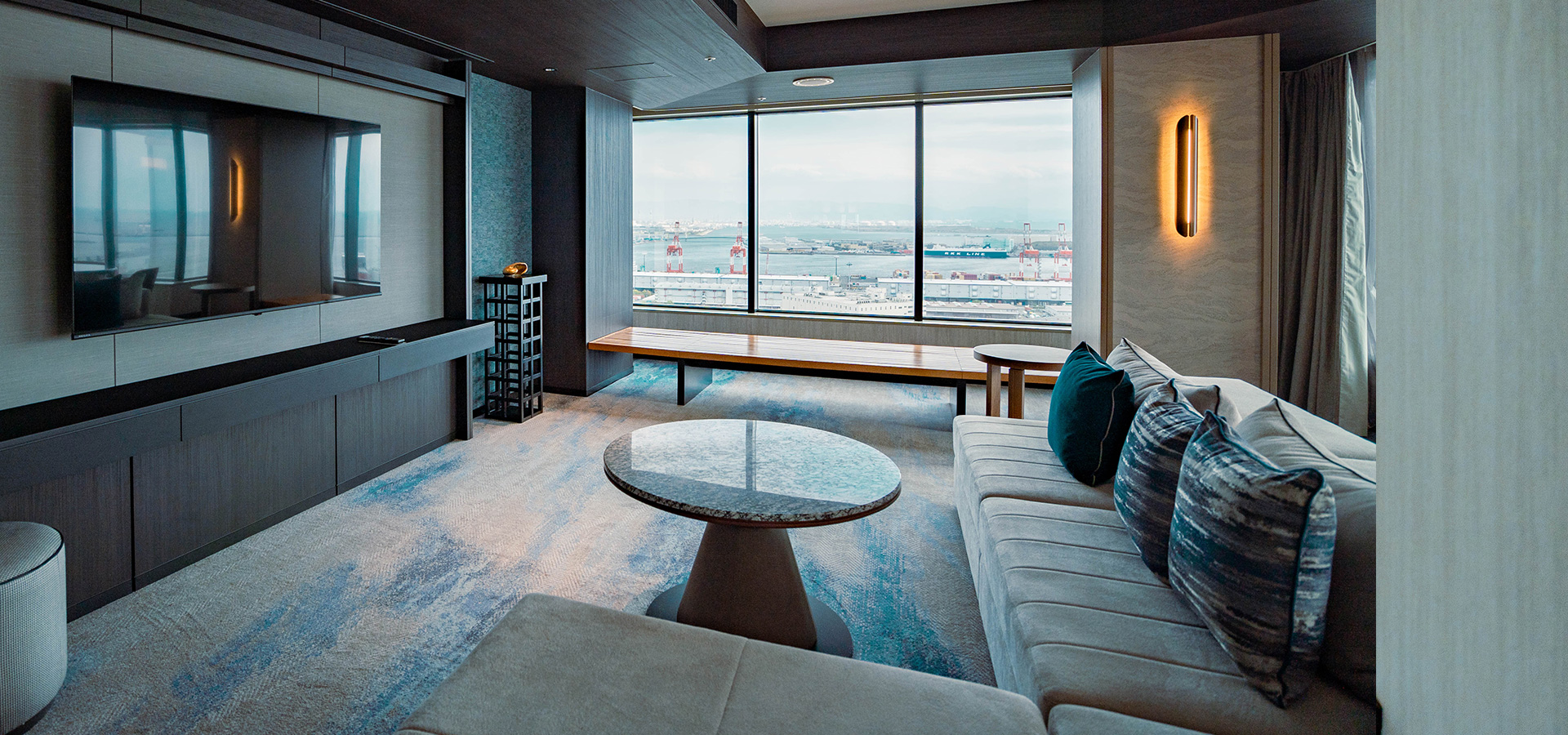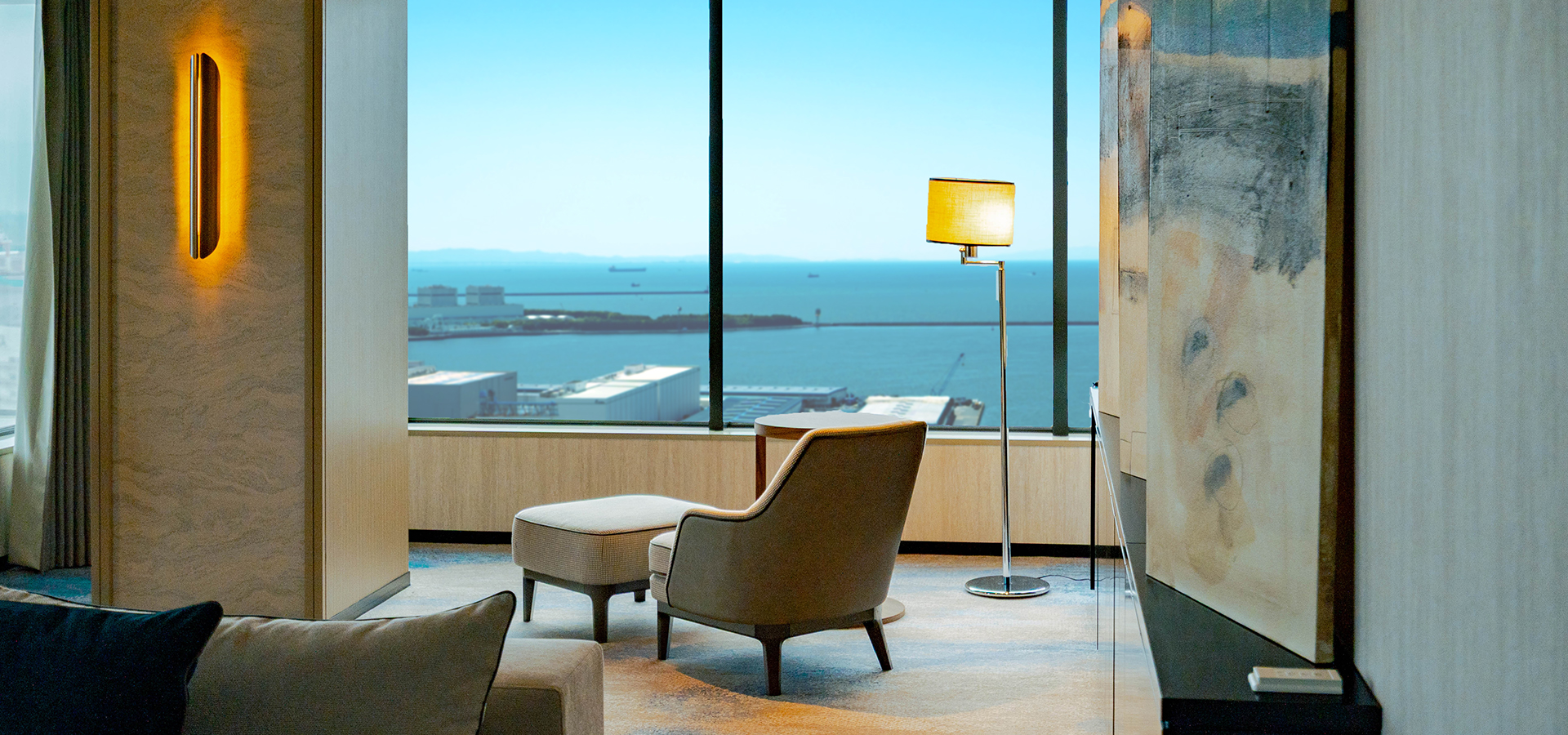 樓層:25F 客房面積:120.0sq.m/1291.6sq.ft. 床型尺寸:120cm×203cm 景觀: 从较高楼层可欣赏全景 最大入住人數:4
