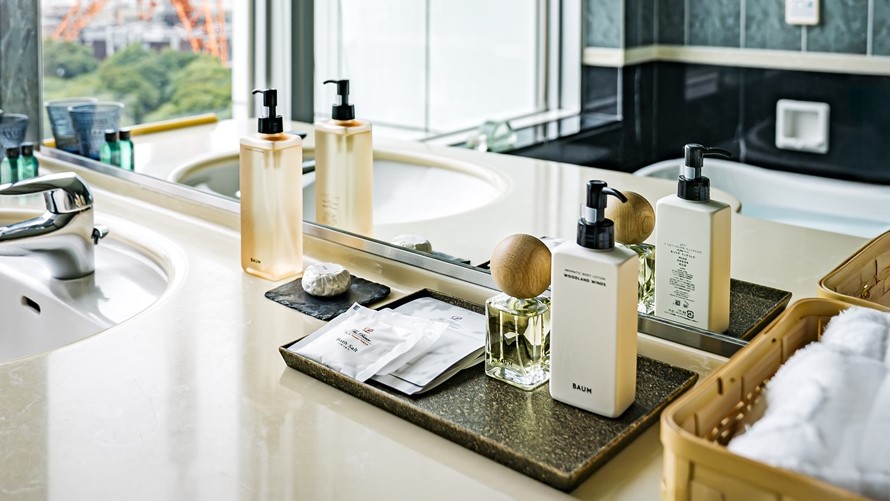 BAUM Skincare Trial Kit (one set per guest) Includes: Hydro Essence Lotion n(30mL) / Moisturizing Oil n(16mL) / Special Sample Face Wash Foam(15g) – Experience BAUM’s skincare, enriched with the blessings of nature, and continue your ritual at home after your stay.