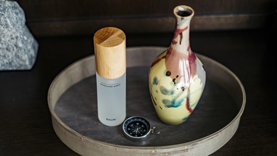 In-room BAUM Amenities Aromatic Hand Wash n / Aromatic Body Lotion / Aromatic Room Spray / Eau de Cologne “Woodland Winds” – Relax in the calming aroma of wood as you breathe deeply and unwind. *Please note that these items are for in-room use only and may not be taken home.