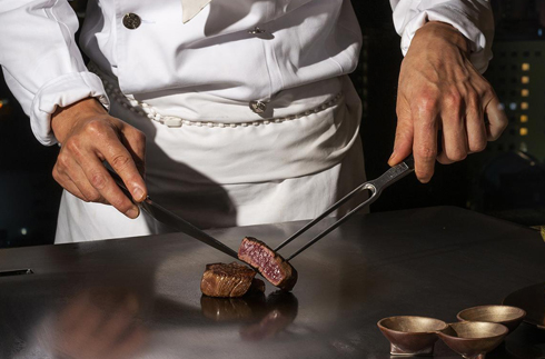 【메뉴】 전채모듬 홋카이도산 가리비 철판구이 간 무를 사용한 소스 생강 엑센트 활전복 소이 철판구이 토마토와 케퍼 버터소스 메인스테이크(A~C코스 중에서 선택해주세요) 야채구이 연어알밥, 절임김치, 아카다시 쇼콜라아이스와 후란부아즈쥬레 글라스담음 커피 또는 홍차