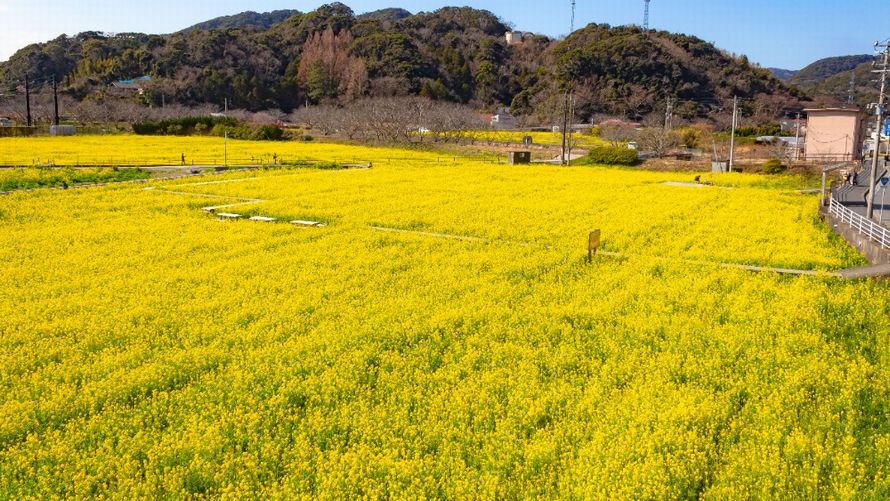 During the Festival, a must-visit attraction is the “Hino Nanohana Field,” created on former farmland. Spanning approximately 3 hectares, this vast area is filled with the delightful scent of rapeseed blossoms, offering a vibrant taste of spring.