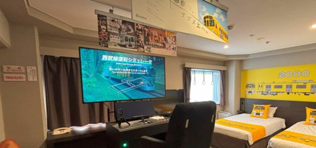 Come and play the driving simulator with Seibu Line Driving Simulator Stay package.Your room will be assigned to an immersive room – your room becomes your very own driver’s cab. The room is installed with an actual driver’s seat from Seibu Railway’s latest limited express「Laview」, and seats once used in 2000 Series trains.