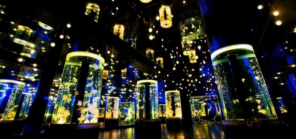 환상적인 야간 수족관 테마의 ‘나케드 모미지 수족관’ 가을 이벤트에서 다채로운 바다 생물들과 함께 신나는 시간을 즐기세요.