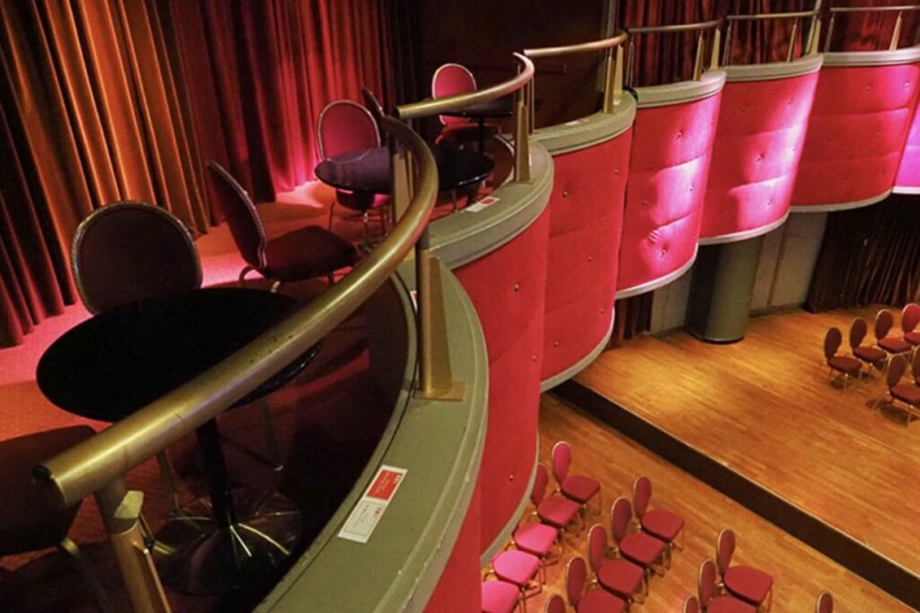 This offer includes tickets to view the performance from the BOX Room, featuring seats in the second-floor balcony area.