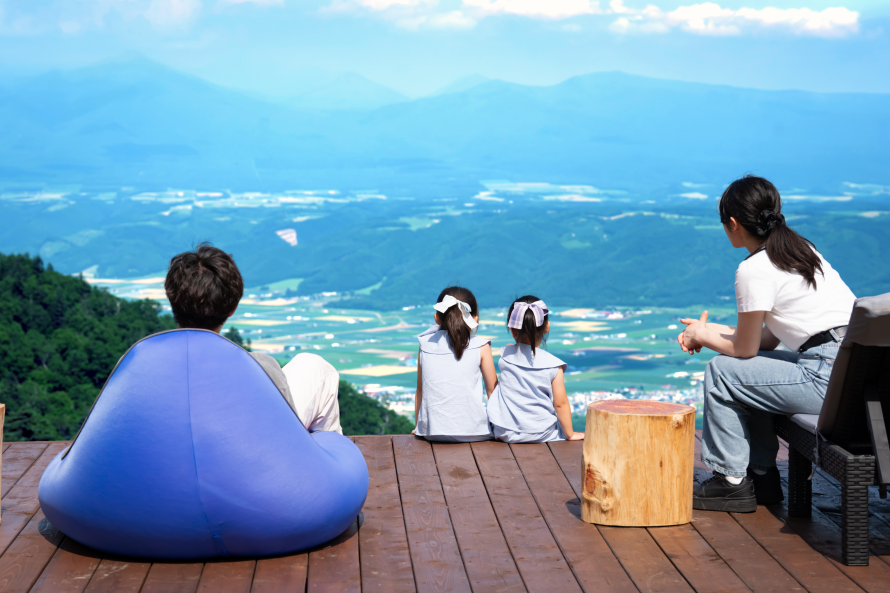 Located at 900 meters above sea level at the Furano Ropeway’s summit station, ASOBOU offers breathtaking views of the Tokachi Mountain Range and surrounding scenery.