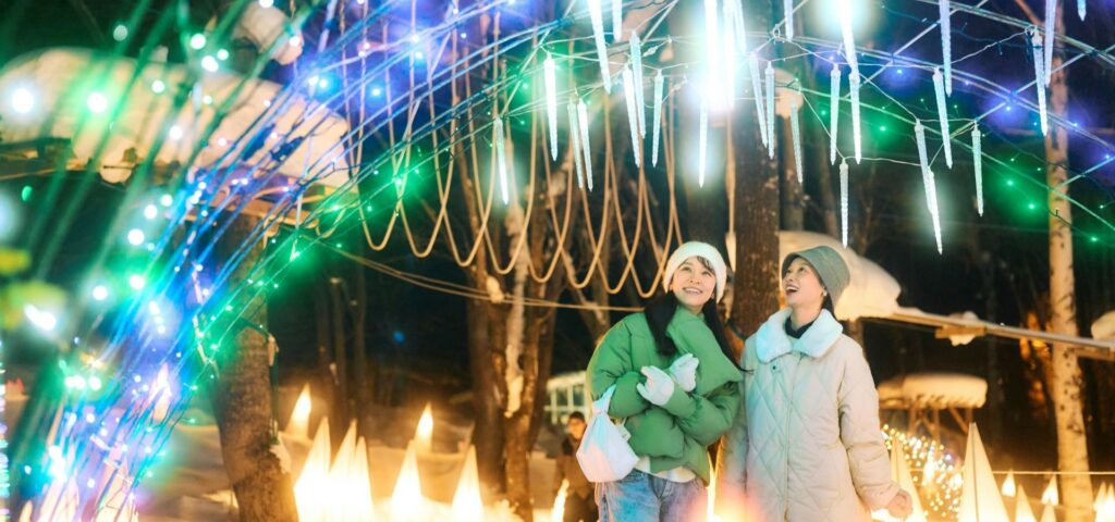 Experience the enchantment of Furano’s winter nights. Our grounds are transformed into a vibrant world of color with breathtaking light displays.