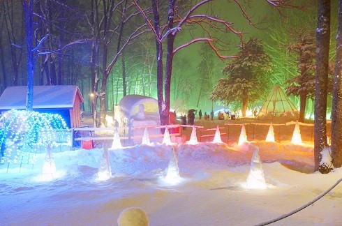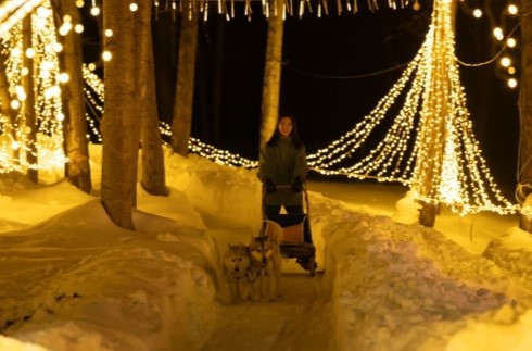 An area for night activities that is illuminated with lights. Enjoy photo spots created from snow and ice, as well as a dog sledding experience.
