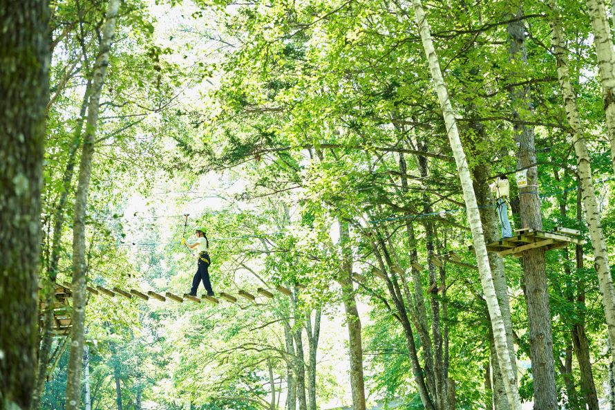 아름다운 숲 속에 마련된 트리 어드벤처 후라노에서