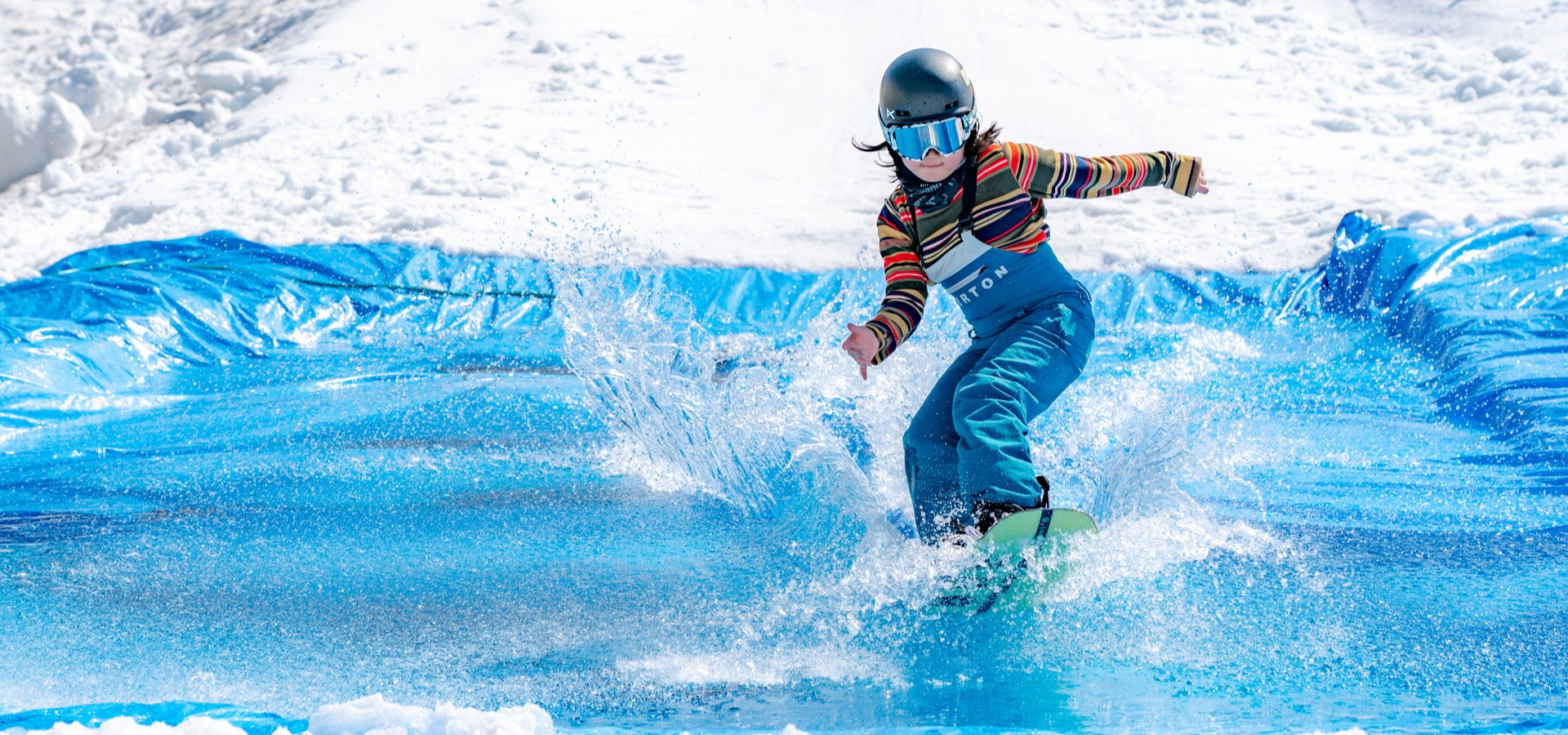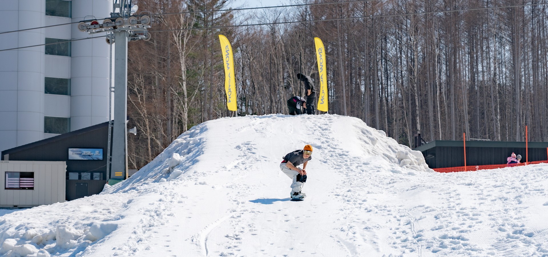 富良野滑雪場人氣活動「春季滑雪越池大賽」!挑戰者將以雙板或單板滑雪跨越約10公尺長的水池。精彩的表現還有機會獲得精美獎品!