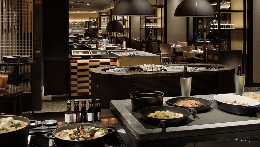 An eclectic array of dishes and desserts showcased in the open kitchen are scrumptious and simply a visual feast. Revel in the glamorous and picture-perfect ambience.