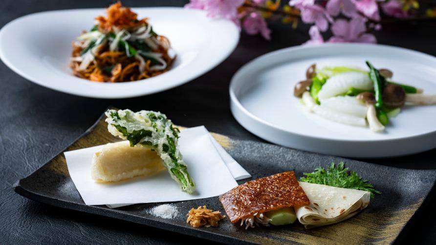 Beginning with seasonal appetizers, followed by spring turnip and shark fin soup, stir-fried bigfin reef squid with seasonal vegetables, and more—each dish highlights unique spring ingredients.