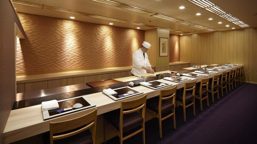 於日本各產地直送的新鮮海產,將由壽司職人在吧台前細心捏製。
