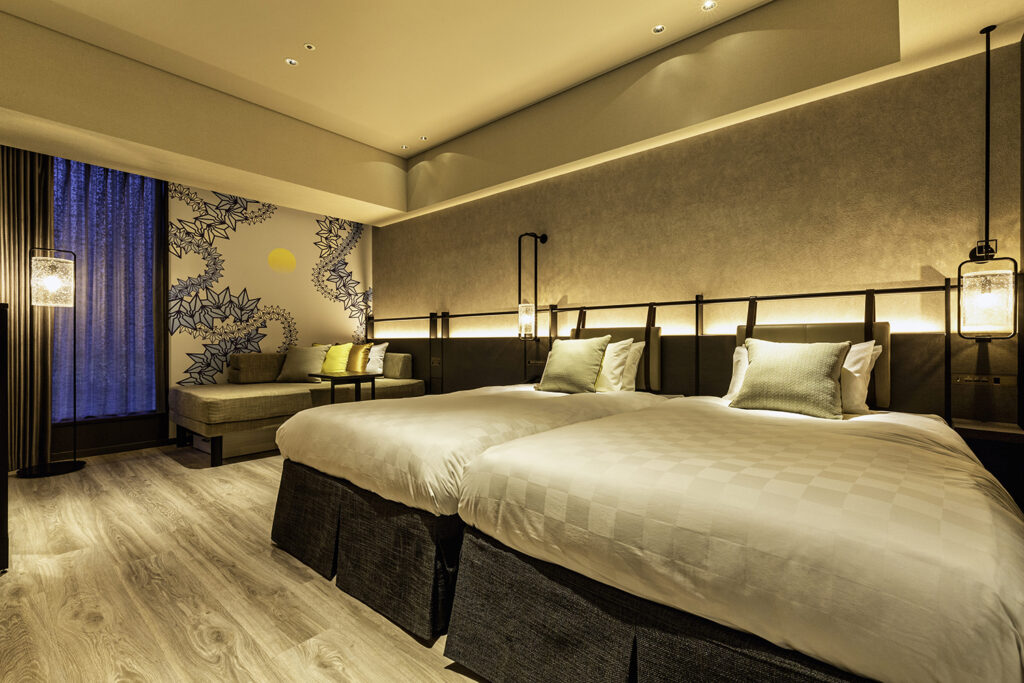Guest rooms accommodating up to four people are equipped with internet-connected TVs and coffee machines, offering both comfort and convenience.