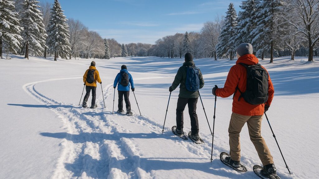 Join a guided trekking tour across a snow-covered golf course and immerse yourself in the stunning winter landscape. Feel the vast, sparkling white world around you and fully enjoy the unique beauty of winter. Snowshoe and pole rentals are available, making it easy even for first-time participants to join.