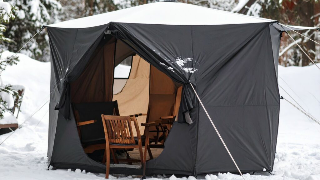 Experience a special warming session in a tent sauna surrounded by snow. The contrast between the cold outdoor air and the sauna’s heat provides a refreshing sensation, revitalizing both body and mind. Enjoy this unique winter “moment of bliss” with friends or family.