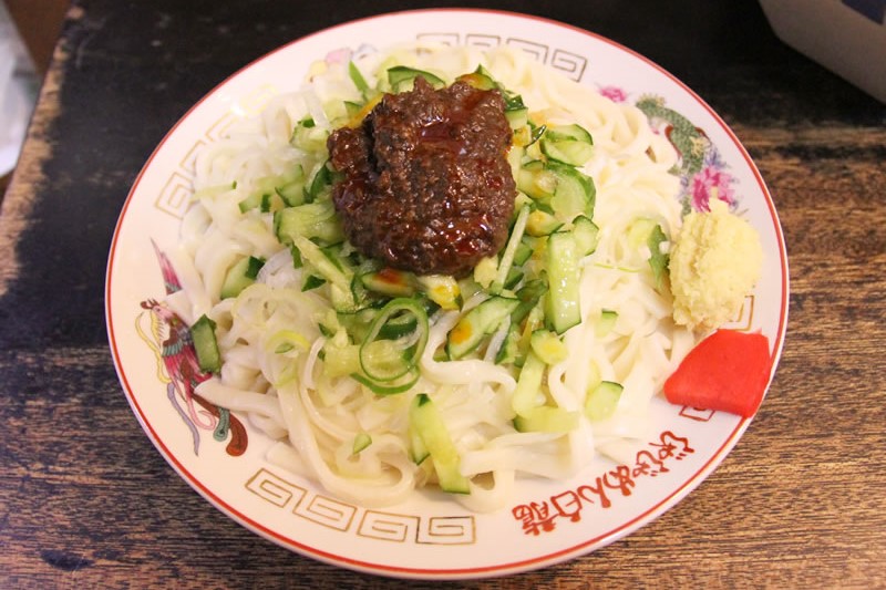 使用平打麵條的炸醬麵為盛岡三大麵之一,屬於無湯拌麵。