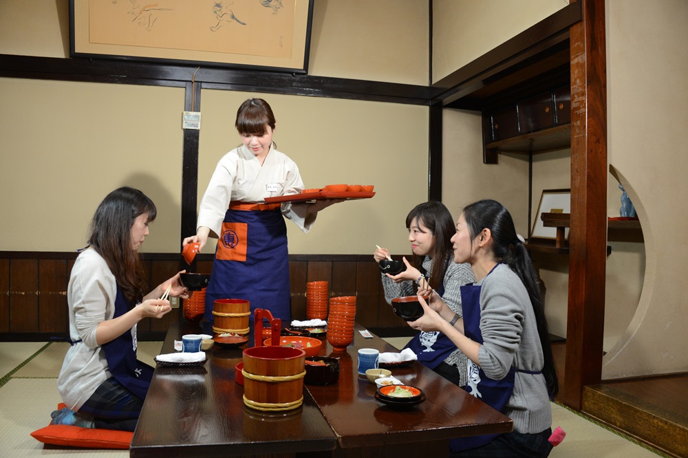 隨著「嗨,將將(好嘞,又來囉又來囉)。」「嗨,咚咚(好嘞,別停下)。」的吆喝聲,服務人員會將一口份量的蕎麥麵快速地放入你的碗中,直到客人喊停為止。快來試試你能吃多少碗吧!東家官方網站>Add Button