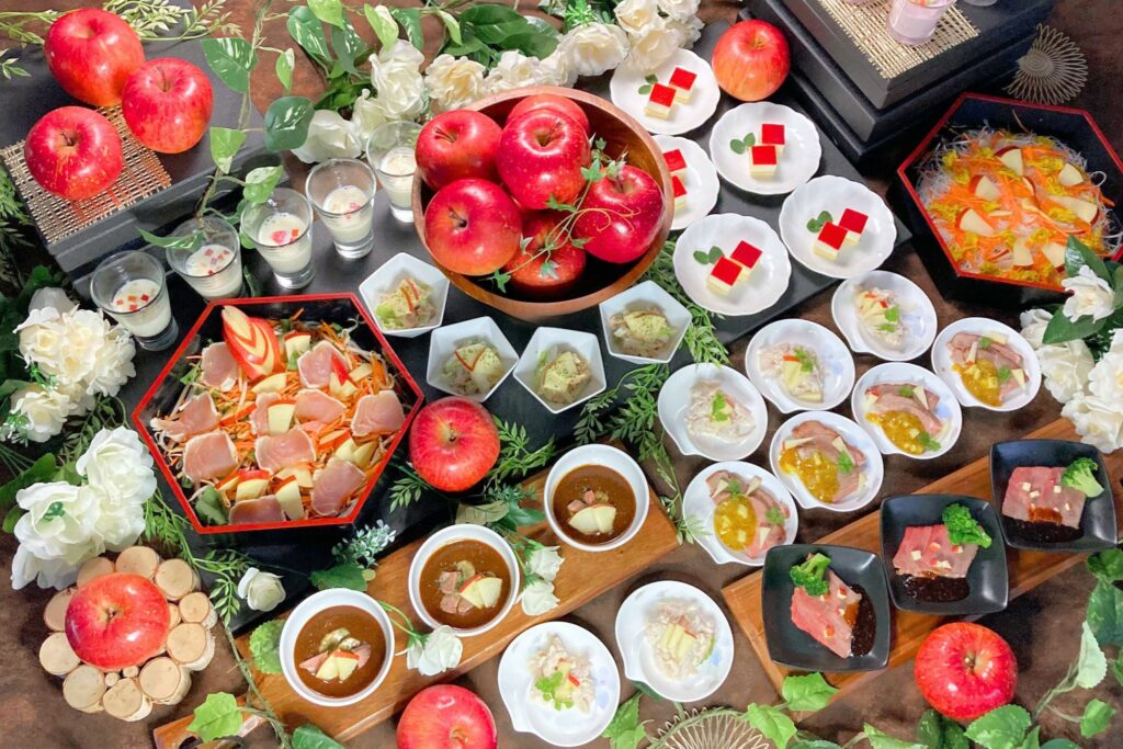 與家人或朋友一同乾杯,享受蘋果雞尾酒!我們為您準備了蘋果沙拉、蘋果甜湯等多種蘋果製作的美味料理。