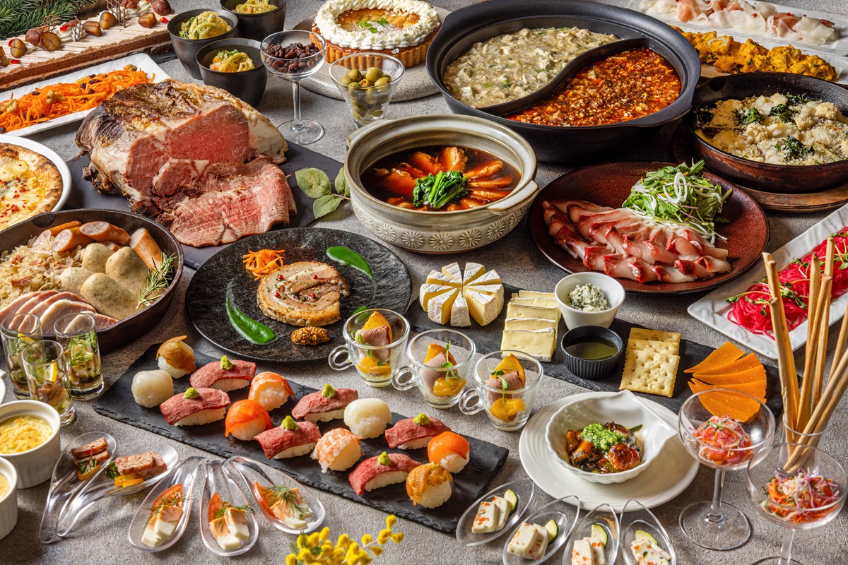 Starting with our signature Wagyu sirloin roast beef, we offer freshly prepared dishes finished at the live performance station. In addition, new menu items supervised by our in-house restaurants, Chinese Restaurant Kokiden and Japanese Restaurant Musashino, are also available for you to enjoy to your heart’s content.