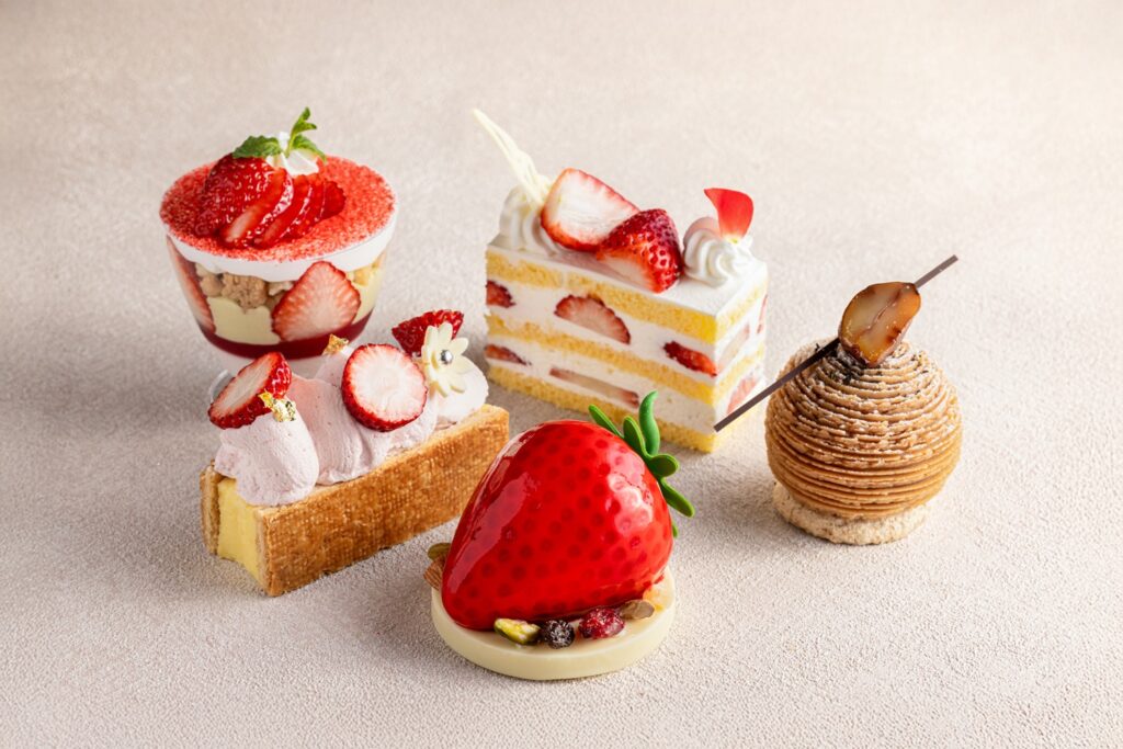Centered around the new strawberry variety “Tochi-aika,” known for its outstanding sweetness, the lineup features a range of indulgent desserts. Indulge in a variety of sweets meticulously prepared not only for their exquisite flavors, but also for their beautiful presentation.