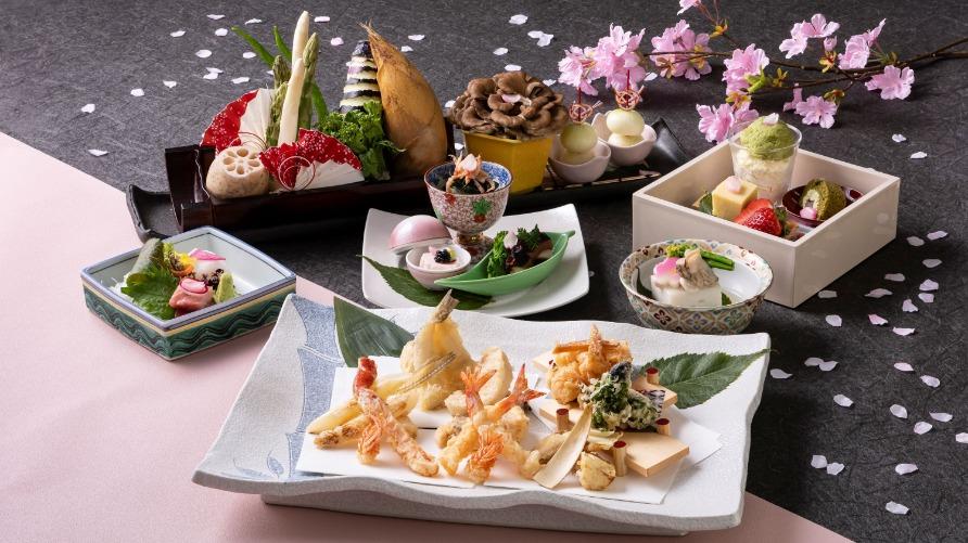 For dessert, enjoy seasonal treats such as sakura sweet potato yokan and matcha-flavored confections, celebrating the essence of spring.