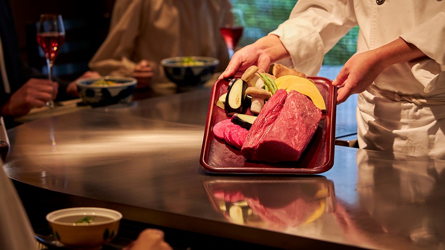 經過嚴格篩選的新鮮食材,由廚藝精湛的主廚在您面前親手調理,讓您在品嚐和牛入口即化的口感時,同時享有最高的視覺享受。