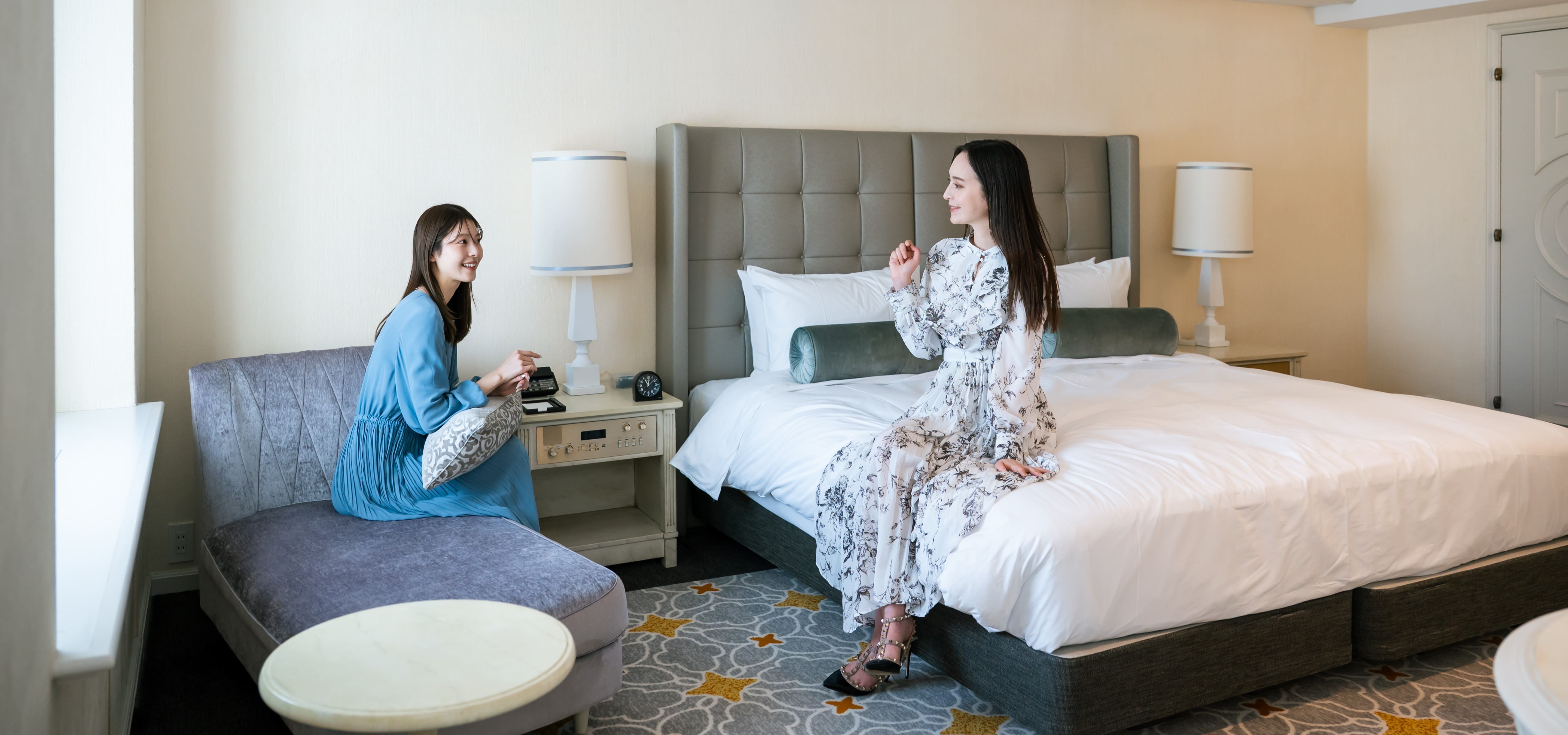 高樓層(9-11F) 房間內洋溢著古典氛圍,裝潢華麗精美。部分房間備有咖啡機。