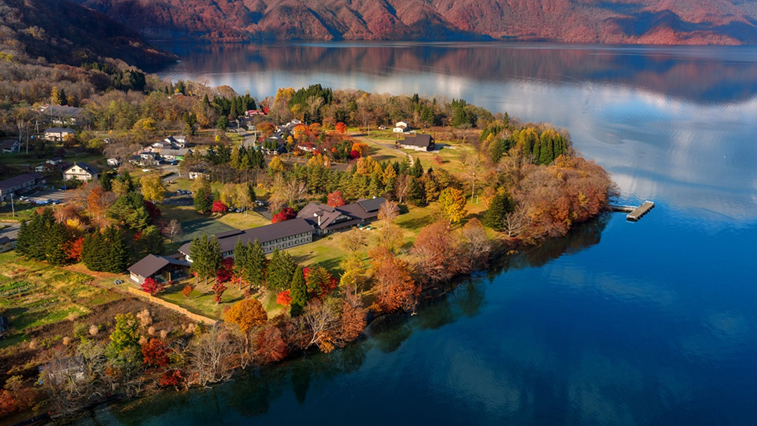 In autumn, the garden in front of the hotel and the surrounding Lake Towada are embraced by brilliant foliage, creating a breathtaking scene. The harmony of the garden, the lake, and the colorful changes of the trees offers an unforgettable experience for every visitor.