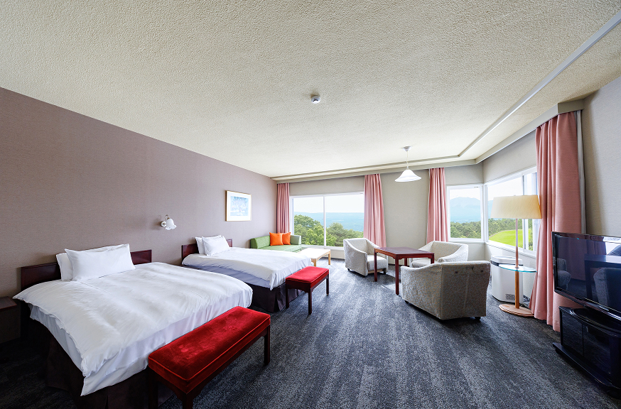 큰 돌출창 너머로는 아사마야마산과 모토시라네산이 보이는 웅장한 풍경과 함께 고원의 상쾌한 바람도 느낄 수 있습니다.