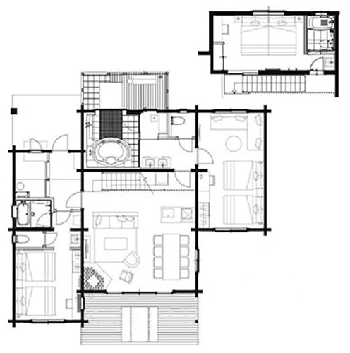 여유로운 메조네트 타입의 빌라는 넓은 2개 층 구조로 이루어져 있어 도심의 번잡함을 잊고 가루이자와에서 편안하고 행복한 휴식을 즐기실 수 있습니다.(최대 8명 이용 가능, 총 5채의 빌라)