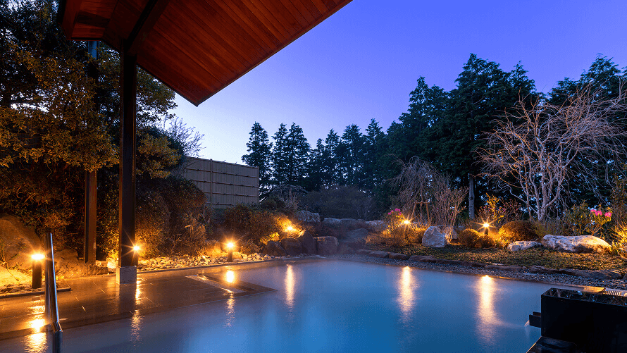 Secluded accommodations surrounded by nature, boasting the highest elevation (935m) in Hakone. From the rooms on the top floor, you can take in the scenery of Sagami Bay, the Miura Peninsula, and Boso Peninsula in the distance, as well as the night view of Tokyo. How would like to have a romantic experience under the expanse of a star-filled sky on a tranquil mountain away from the noise of the city? The open-air hot spring baths are a mountain oasis at the highest elevation in Hakone, with milky white waters that soothe mind and body.