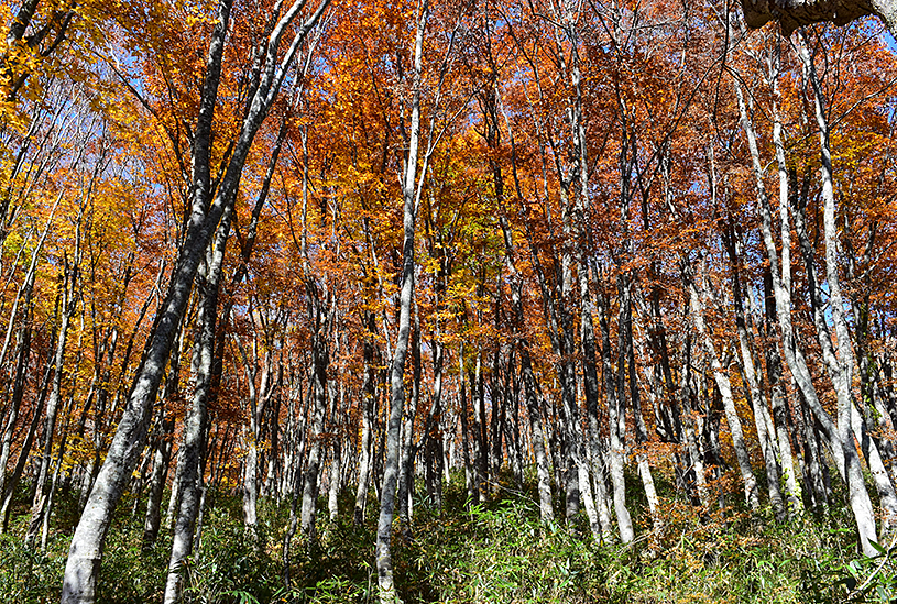 坐在缆车中,近距离欣赏鲜红斜坡的绝美红叶,正是搭乘缆车的最大魅力。特别是12~17号支柱周围的林木色彩最为美丽,而从24号支柱附近望向野尻湖的景致,更是令人赞叹。乘坐缆车抵达后,不妨从山顶站附近延伸而出的「赤仓山南麓湿原步道」,展开一场红叶漫步之旅。这将会是一段令人难以忘怀的秋日体验。