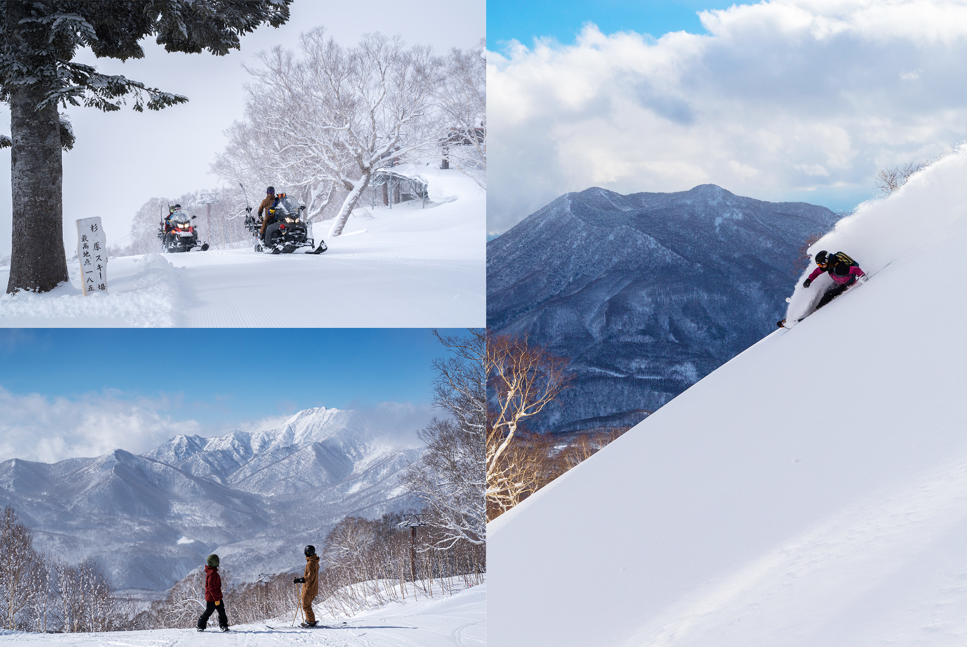 滑到山脚后,搭乘第二班缆车再次到达山顶站。这次,您将搭乘雪地摩托车前往位于滑雪场顶部的第3高速缆车终点。从山顶可以俯瞰到长野县一侧的平原,面对那雄伟壮观的自然景色,您的心灵也定会受到洗涤。妙高杉之原从山顶海拔1,855米到底部731米的地方,海拔差1,124米,其引以为傲长达8.5公里,令人惊叹的长滑道所带来的奢华时光将全由二人独享。