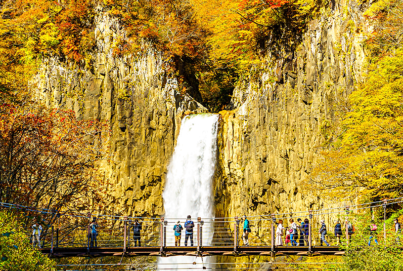 搭乘妙高杉之原纜車,前往日本百名山之一的妙高山山麓。當山巒整片染上燃燒般的朱紅色時,不妨搭乘纜車,展開一場彷彿漫步天空的紅葉之旅吧。纜車以低空行駛,與色彩鮮明的紅葉近在咫尺,彷彿伸手就能觸及,臨場感十足。請同時欣賞腳下蔚藍壯麗的野尻湖美景,一同沉浸在大自然的絕景之中。